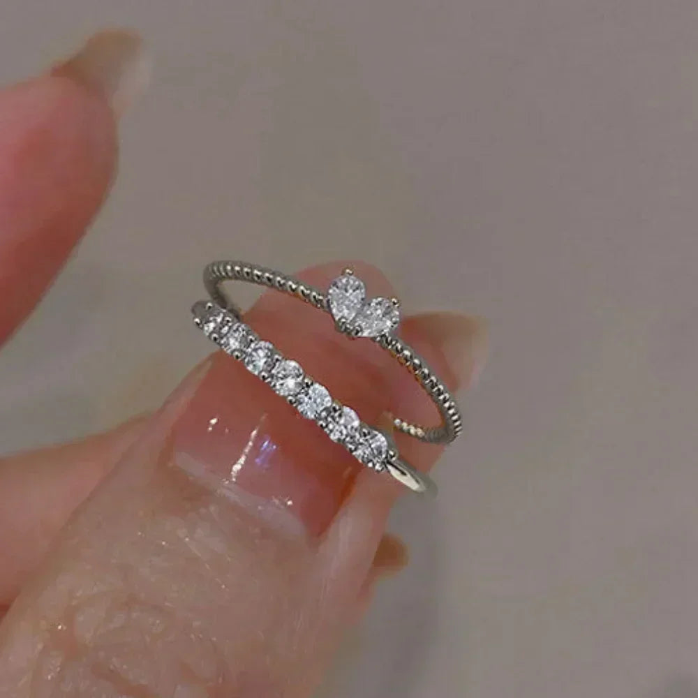 Luxury Zircon Heart Rings for Women Opening Adjustable Weave Rhinestone Ring Engagement Wedding Jewelry Fashion Girlfriend Gifts